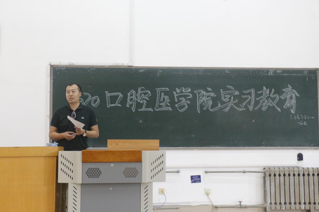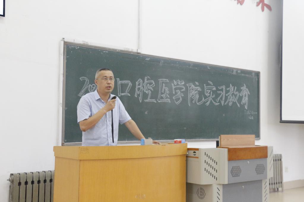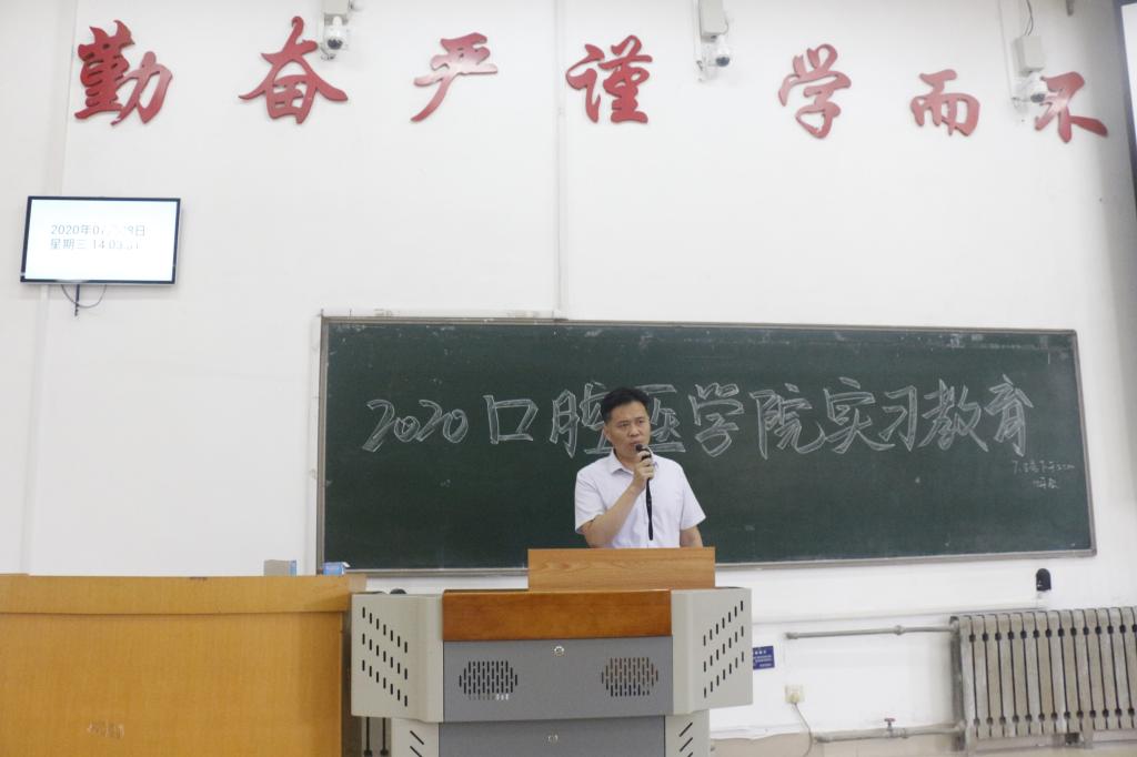 7月8日下午,pg娱乐电子游戏官网入口于教学楼c1014教室举办实习教育大会,pg娱乐电子游戏官网入口党总支书记孔志峰、党总支副书记谢建立、口腔外科教研室主任张古泉以及2017级全体实习学生参加大会。