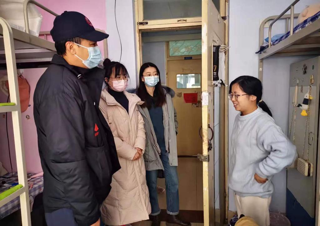 为掌握寒假留校学生思想动态,做好留校学生的管理服务工作,根据校(院)疫情防控工作要求,1月18日,学院党总支副书记谢建立,带领学院辅导员深入宿舍走访看望寒假留校学生,在寒冷冬日为留校学生送去学院的关心和温暖。