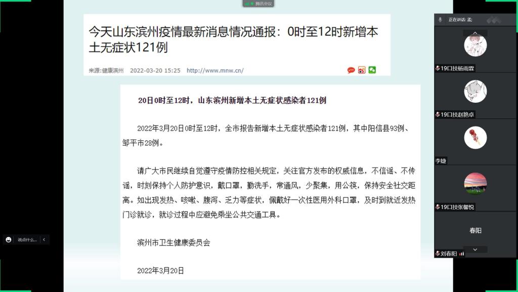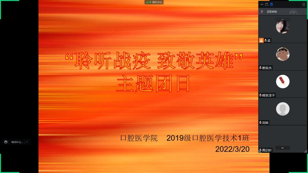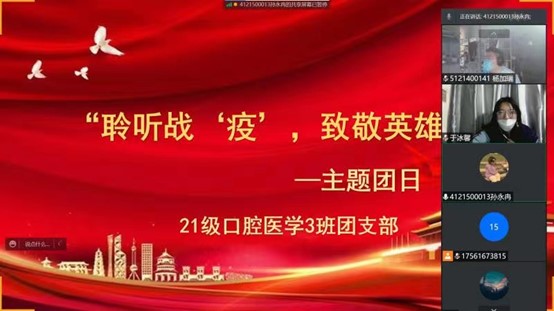 为贯彻落实校(院)疫情防控工作部署要求,切实做好疫情防控工作,让同学们进一步了解抗疫逆行者的感人事迹,增强责任意识与担当意识,2022年3月22日,pg娱乐电子游戏官网在校年级各班团支部以线上方式开展“聆听战‘疫’,致敬英雄”为主题的团日活动。