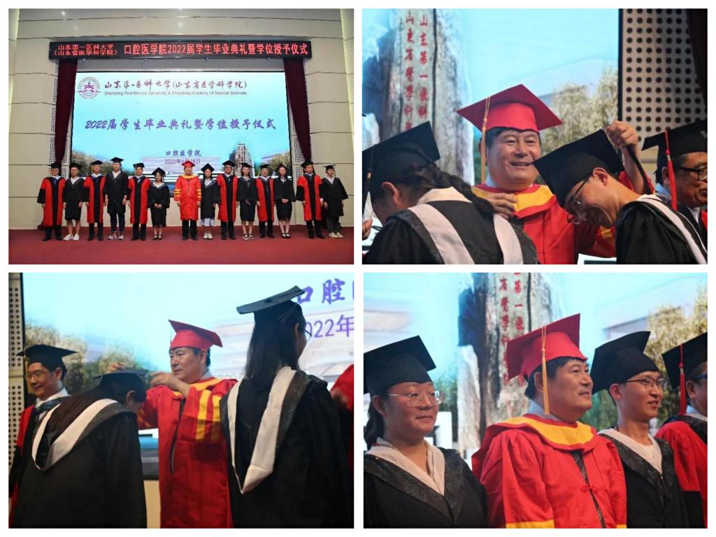 2022年6月28日上午,pg娱乐电子游戏官网入口2022届毕业典礼暨学位授予仪式在长城路校区图书馆报告厅顺利举行。出席毕业典礼的领导老师有:副校(院)长张福仁、pg娱乐电子游戏官网入口院长张东升、教务部副部长范华、pg娱乐电子游戏官网入口党总支书记孔志峰、泰安市口腔医院院长诸葛春耕、附属泰山医院口腔科主任万光勇、第二附属医院口腔科主任雷印涛、pg娱乐电子游戏官网入口副院长、附属聊城医院口腔学部主任李克义、pg娱乐电子游戏官网入口副院长程厚文、pg娱乐电子游戏官网入口党总支副书记谢建立、省立口腔医院院长助理马利,以及pg娱乐电子游戏官网入口教师代表、辅导员、2022届全体毕业生及在校生代表。毕业典礼由pg娱乐电子游戏官网入口院长张东升主持。