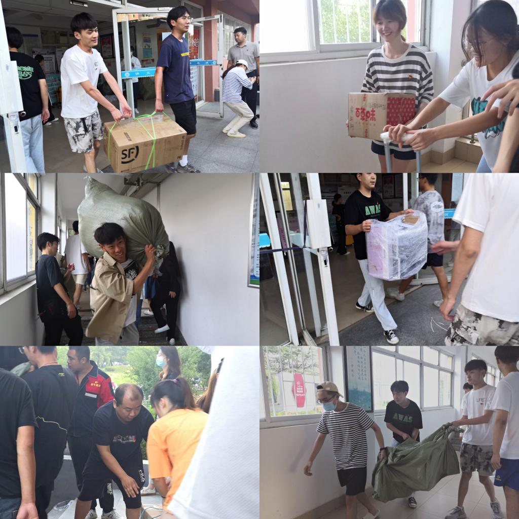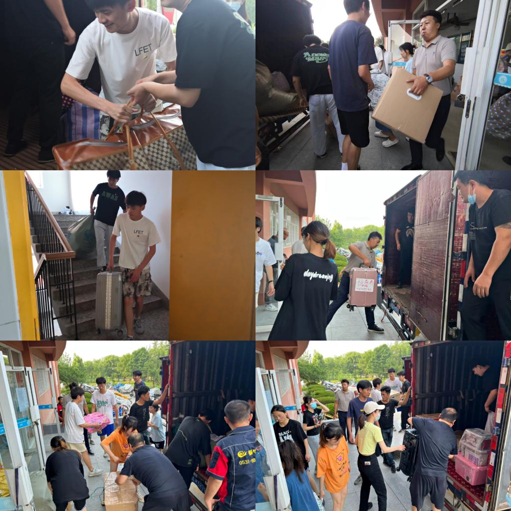 早上六点,学生党员志愿者蓄势待发。运送车到达后,参加活动的党员佩戴党徽,精神饱满的投入到活动中,井然有序的把行李搬往运送车上。看似简单的体力劳动,却充分考验了大家的毅力。由于建校时间较早,多数宿舍楼并未配备电梯,楼上楼下往返两趟,就已经是汗流浃背。没有抱怨、没有推辞,党员志愿者们用进进出出的脚步声,展现着共产党员的担当与奉献。宿舍楼前,衣衫湿透、奔波忙碌着的,是我们的先锋与模范。整个过程有条不紊的进行着,同时具有着较高的效率,仅耗时不到两小时便将所有工作完成。同学们齐心协力,将行囊从泰安运往济南,挥手告别了居住了三年的宿舍,大巴车上一幕幕不舍的告别结束了此次搬校区活动。