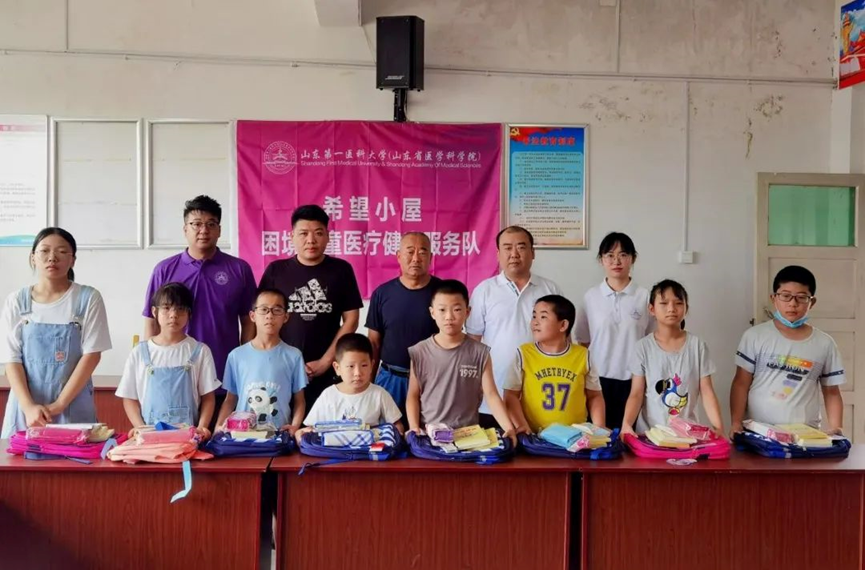 同时,本次医疗健康服务队还对当地“希望小屋”困境儿童开展了健康关爱行动,向夏张北村留守儿童代表赠送爱心书包和文具,服务队成员老师与孩子们亲切交谈,勉励他们努力学习。此次关爱行动旨在进一步加大对困境儿童群体的关爱保护力度,关注困境儿童身心健康,护航健康快乐成长。