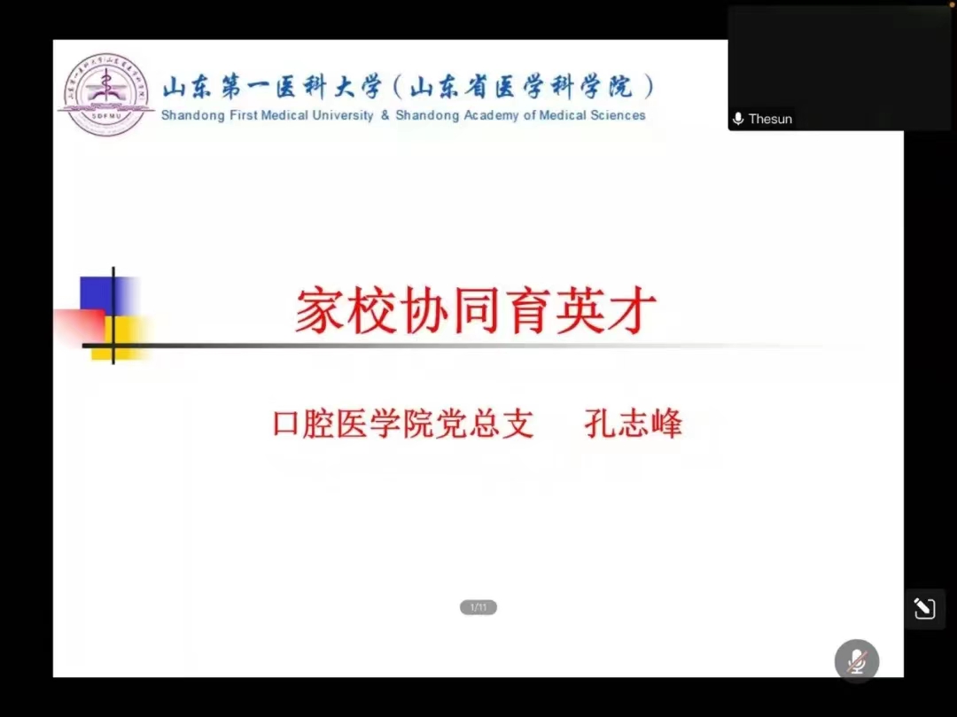 本次会议以“家校协同育英才”为主题,为新生家长详细介绍了学校及学院情况。张东升院长率先从学院及专业发展、对口腔学科的认识、人才培养、升学与就业四个方面向家长们进行介绍,并针对本科生的培养方案做了详细解读。接着,党总支书记孔志峰介绍了目前校(院)总体情况及文化内涵,围绕校(院)的人才培养目标、学院如何服务学生成长成才、职业规划与家校共育等问题与各位家长分享相关建议。最后党总支副书记谢建立针对学院学工办及辅导员队伍建设情况、学生日常管理做了详细介绍。