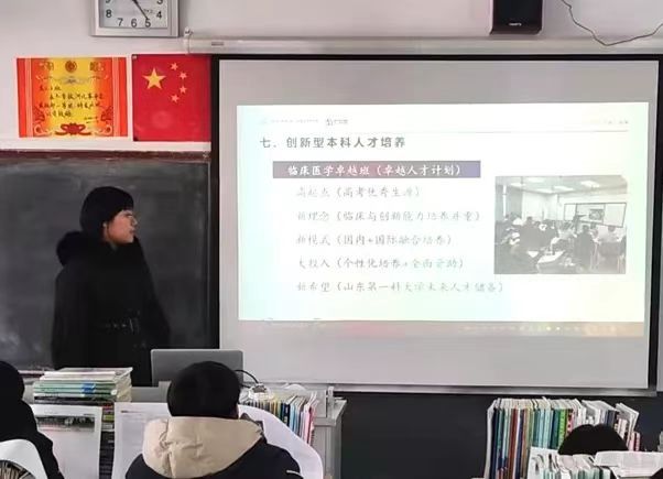 2020级宗倩如、2021级陈雅欣、于冰馨、谷长烁、侯云耀代表pg娱乐电子游戏官网入口第二支招生宣讲队伍向高三学子进行线下宣讲。宣讲队介绍了校(院)和学院概况及招录政策,并发放招生专刊,展示了校(院)雄厚资源与强大力量。宣讲队也为高三学子作出学习经验分享,希望大家放下紧张与畏惧,带上信心与细致从容面对高考,并鼓励大家报考山一大,献身医学,待学有所成,回报社会!