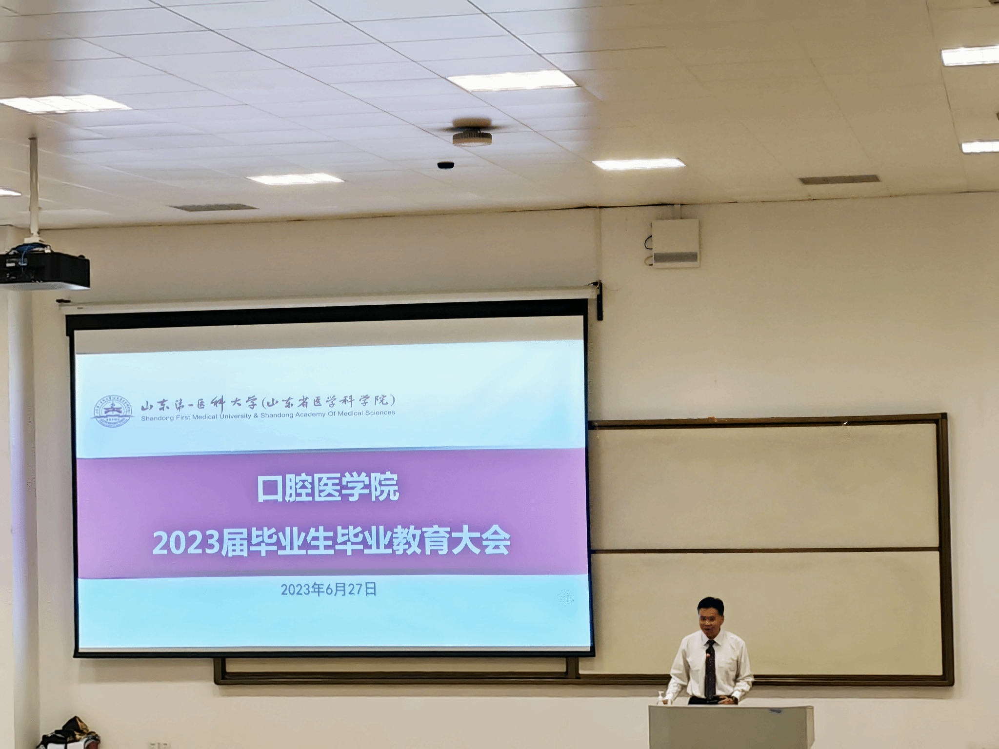随后,pg娱乐电子游戏官网入口党委书记孔志峰为全体毕业生圆满完成学业送上真挚祝福,并结合口腔行业人才培养现状,指导学生合理进行职业规划。他希望同学们不畏将来,砥砺奋进,用奋斗作为青春的底色,以勇往直前的姿态展现山一大优秀学子的形象与风采。