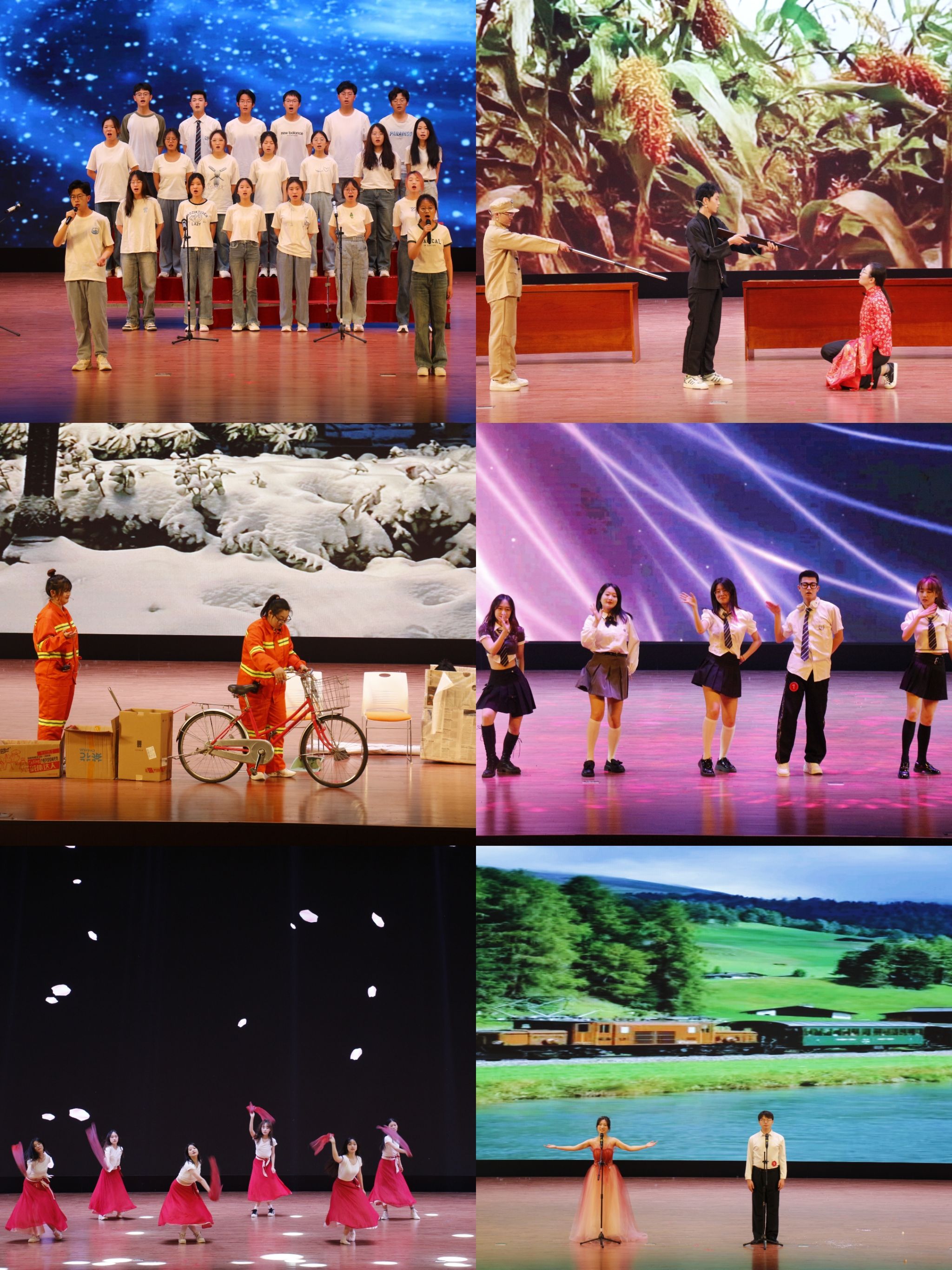 比赛现场精彩纷呈,有歌曲《飞云之下》《仰望星空》,彰显朝气,青春昂扬;有舞蹈《Ditto》《姻缘》,活力四射,热情奔放;有朗诵《光的赞歌》《钢铁》,激情澎湃,歌颂光明;还有器乐演奏《辽南欢歌》,曲调欢快,扣人心弦;有情景剧《红高粱》,演绎抗日传奇;有暖心默剧《暖冬》,笑点泪点一起戳。台上表演精彩,台下掌声雷动。最终,在结尾曲《少年般绚丽》的歌声中,决赛顺利落下帷幕。