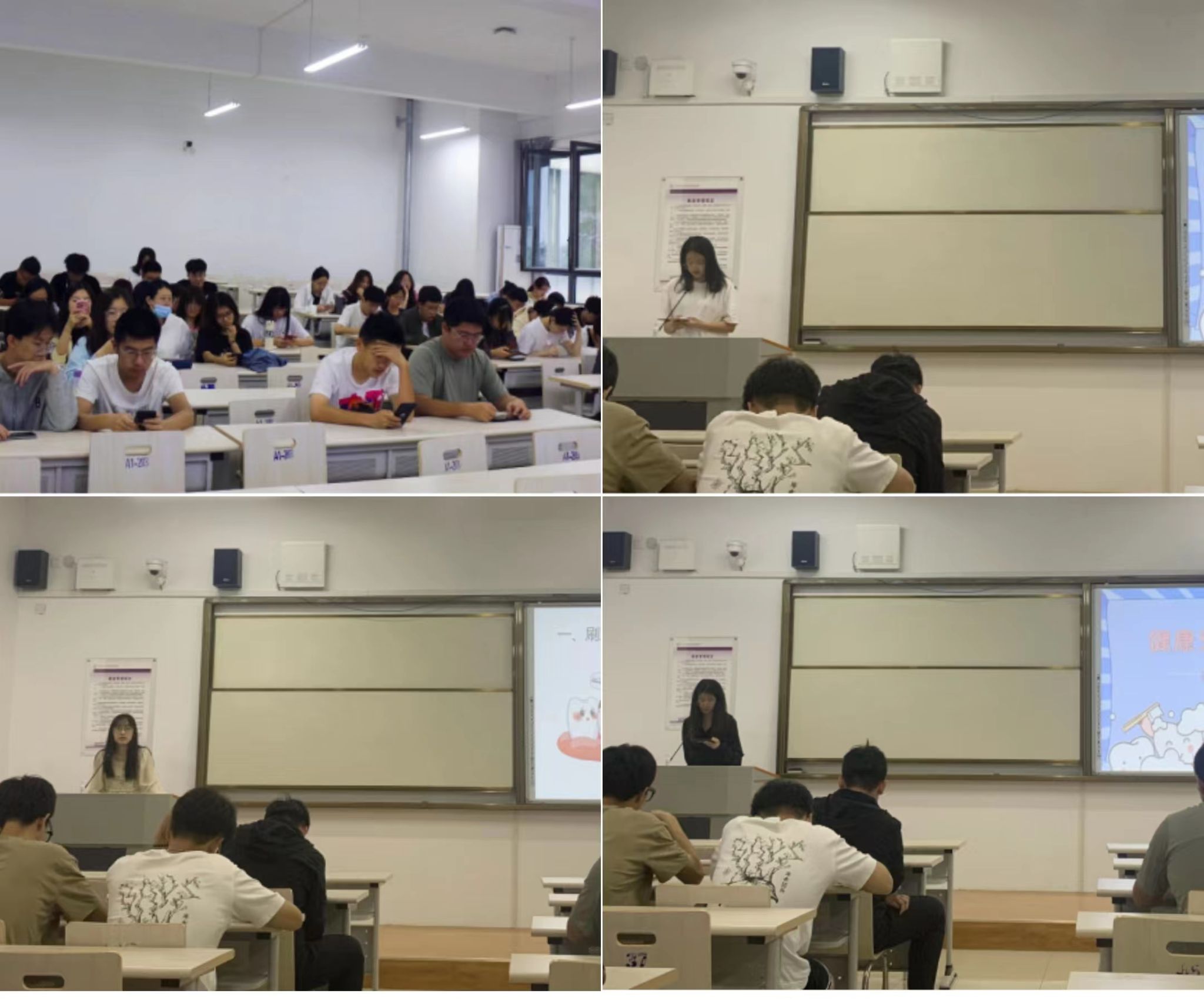 本次活动,志愿服务总队先给同学们播放了口腔健康宣传片,让同学们对口腔知识有了初步的了解。随后,三位同学进行了口腔知识科普,丰富实用的内容和生动形象的讲解进一步强化了同学们对口腔问题的关注,增强了口腔健康观念和自我口腔保健的意识。