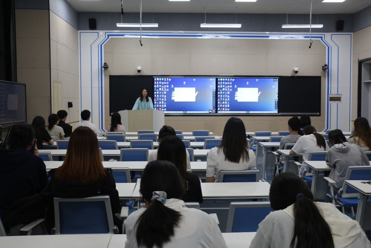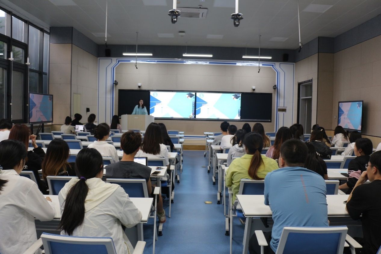 首先,谭玥老师进行讲话。她简要介绍此次交流会的流程,希望同学们仔细倾听,鼓励同学们积极考研,并对此次交流会的成功举办致以衷心祝愿。