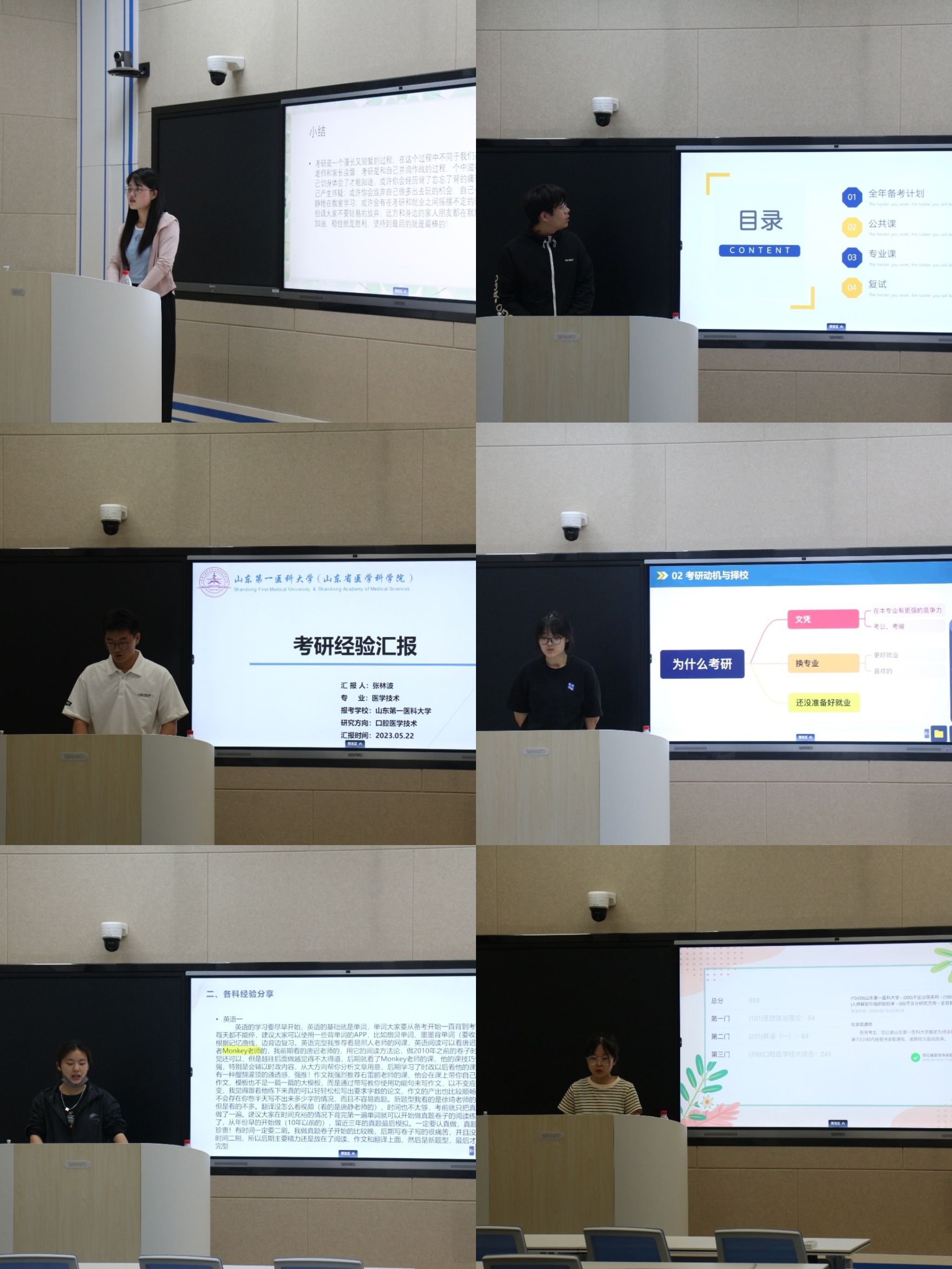 接着,会议请出进行考研经验分享的同学,进行了深刻详细的经验交流,分别从不同侧重点进行全面详实的分享。