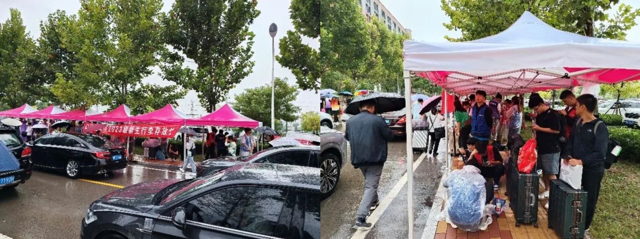 步入大学,就像步入一个新的旅程,在旅途的开始,我们已为你们铺好了来时的路。我们在新生报到处——风雨操场设置有专门的签到摊位,负责提醒新生填写表格,收集新生的基本信息,并引导新生完成报到流程。在停车场接站口处,学院的志愿者搭建了存放行李的雨棚,张贴迎新横幅,为新生和家长们提供暂时存放行李的地方。