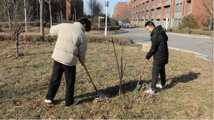 阳春三月,草木萌发。本次活动内容丰富多彩,共分为校园绿化植树、校园垃圾清理以及垃圾分类宣传三个项目。在校园绿化植树项目中,同学们在工作人员的组织下,于药苑进行了植树活动。在刨土、翻坑、种苗、填土、培埋的过程中,同学们学会了植树的基本操作过程,更体会到了植树的辛苦与保护树木的重要性。植树完成后,同学们紧接着用准备的水桶,从宿舍楼取水,浇灌栽培的树苗,并对药苑内的小树进行翻土等保护工作。
