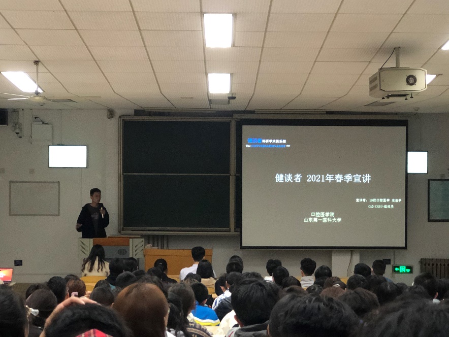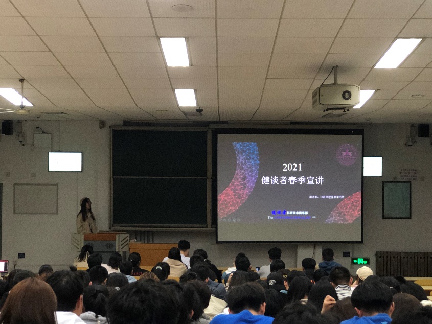 宣讲伊始19级史浩宇为大家展示了“健谈者”学生参加2021年挑战杯的短片介绍了“健谈者”的起源和历史以及“健谈者”创立以来在论文发表和科研创新方面取得的成绩最后他欢迎20级学弟学妹们参与到这样一个把创意变成现实的学术科研交流平台。接下来,18级崔乃雨分享了自己参加“健谈者”以来的心得。她提到作为一名“健谈者”,很多时候是在用别人休息的时间做研究,累充实。她鼓励同学们加入到平台中来,和一群志同道合的人一起,在大学中做一些有意义的事情。