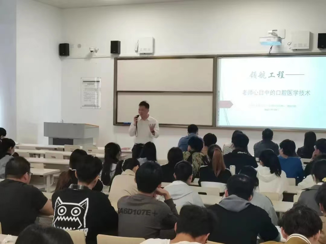 为响应“大力发展科学技术”的号召,提高大学生的创新意识和科研水平,为口腔医学技术专业学生的未来规划明确方向,激发学生的进取意识,9月23日,pg娱乐电子游戏官网入口召开“领航工程—老师心目中的口腔医学技术”座谈会。pg娱乐电子游戏官网入口党总支书记孔志峰、pg娱乐电子游戏官网入口李宁波博士、刘冰博士、姜亨波博士、付潇博士及2020级、2021级口腔医学技术专业全体学生参加了此次会议。会议由pg娱乐电子游戏官网入口辅导员王玉姣老师、谭玥老师主持。
