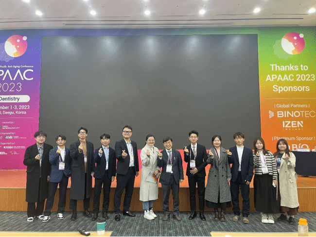 12月1日至12月3日,pg娱乐电子游戏官网入口师生于韩国大邱会展中心赴邀参加“APAAC第六届亚太抗衰老研修大会”。期间,pg娱乐电子游戏官网入口师生参与倾听了各个国家教授的相关演讲并进行了积极提问和交流。此外,pg娱乐电子游戏官网入口的学生们还积极体验了口腔数字化的前沿技术和仪器。12月2日晚,在APAAC的晚宴上,姜亨波老师受邀上台贺词并被授予证书。