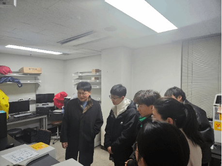 12月4日上午,姜亨波老师和及范迪老师率团访问庆北大学pg娱乐电子游戏官网入口(Kyungpook National University),与庆北大学pg娱乐电子游戏官网入口院长李在穆教授以及学科主任伊东浩教授展开交流,密切与合作高校的联络。庆北大学教授带领访问学生参观口腔医学实验室,并予以细致讲解。