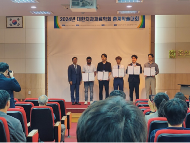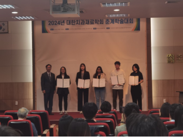 其中孔佳文同学和徐佳琪同学荣获由韩国材料学术会会长兼首尔国立大学口腔教研室主任Hyeong-Cheol Yang教授颁发的演讲优秀奖,该成果的取得不仅仅是学生团队的荣誉,更是对他们科研能力的肯定。在研究过程中,学生们以自身对学术的热爱,付出艰苦努力,克服了重重困难,借此提升了自己的科研水平和解决问题的能力,为今后的学术研究之路进一步奠定了坚实基础。
