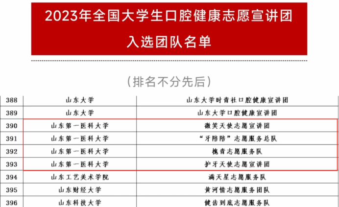 10月20日,pg娱乐电子游戏官网入口“微笑天使”志愿服务队、“牙陪陪”志愿服务总队、槐青志愿服务队、护牙天使志愿宣讲团4支队伍代表校(院)申报获批共青团中央2023年全国大学生口腔健康志愿宣讲团。