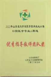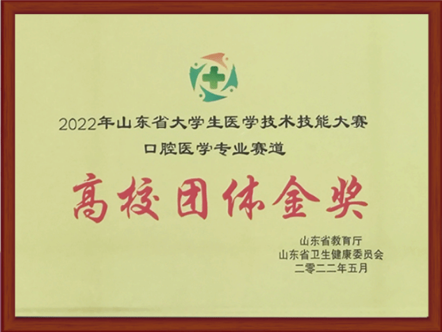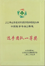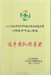 学生在第五届“黄炎培杯”全国口腔医学技能大赛、第十七届“日进杯”全国口腔医学技能大赛获得团体一等奖1项,单项比赛中获得一等奖 4项,在牙体制备中获得团体第一名。在2022年度山东省医学技能大赛口腔赛道中,A、B 两个队分别取得第一名和第二名,分获特等奖和一等奖,获口腔赛道总分第一名、团体金奖。