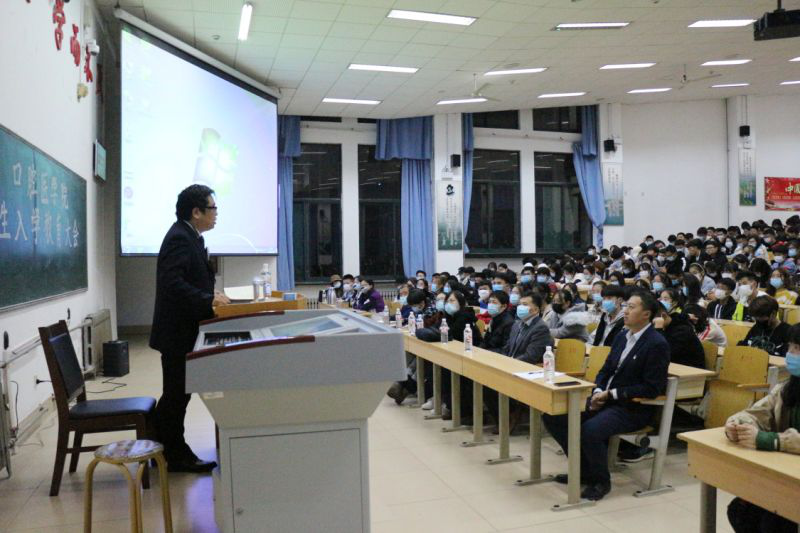 10月18日晚,在教学南楼C2024教室,pg娱乐电子游戏官网入口院长、山东省立口腔医院执行院长张东升教授为学院新生做入学教育,学院领导老师及全体大一大二学生参加了此次教育大会。