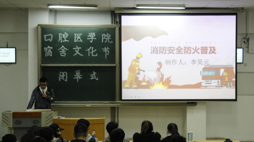本次宿舍文化节以“和谐寝室、安全寝室;注重消防、不忘抗疫”为主题,开展了形式多样的特色活动。由于近期各地大学寝室火灾问题频发,“消防安全”主题成为本次宿舍文化节的重中之重。在闭幕式上,我们回顾了此次活动的点滴、对获奖寝室进行了颁奖并由获得宿舍消防PPT制作优秀奖的同学为我们着重详细地讲解了寝室消防安全的问题与防治。
