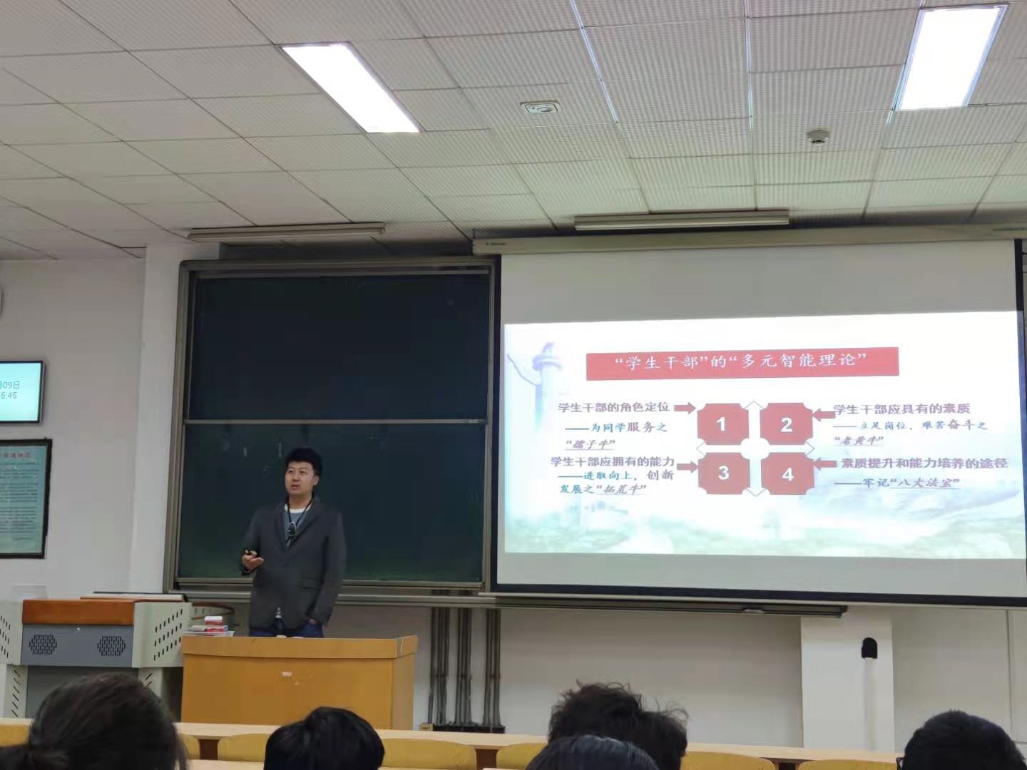 谢建立提到总书记对领导干部提出“三力”:判断力,领悟力,执行力。他认为作为学生干部同样要有这“三力”。谢书记还为同学们梳理了学生干部的“多元智能理论”,在新学年定好目标,即找好为同学服务的“孺子牛”角色定位;培养立足岗位、艰苦奋斗的“老黄牛”品质;发扬进取向上、创新发展的“拓荒牛”精神,牢记“八大法宝”来提升素质和培养能力。