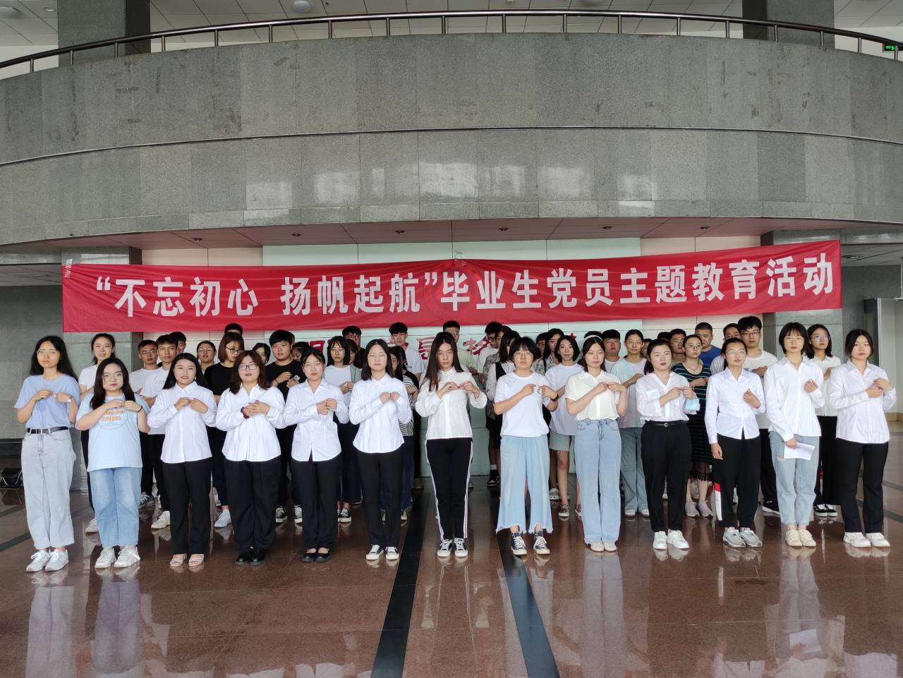 稍后学院举办了“庆建党百年华诞,谱吾辈青春华章初心”党员主题教育活动,本次活动共分为两部分。首先,学院新党员进行入党宣誓,其他党员重温入党誓词。紧接着,学院领导和教师党员代表为新党员佩戴党徽。活动第二部分,“不忘初心,扬帆远航”,学院对全体毕业生党员进行赠书,毕业生党员进行毕业宣誓。“承诺在离校后,坚持以习近平新时代中国特色社会主义思想为指导,认真履行党员义务,自觉遵守党的纪律……做一名更加优秀的共产党员,为母校争光。”在2021届毕业生即将踏上人生新的征程之时,党总支书记孔志峰勉励毕业生党员要牢记入党初心,锤炼品德修为,担当时代重任。