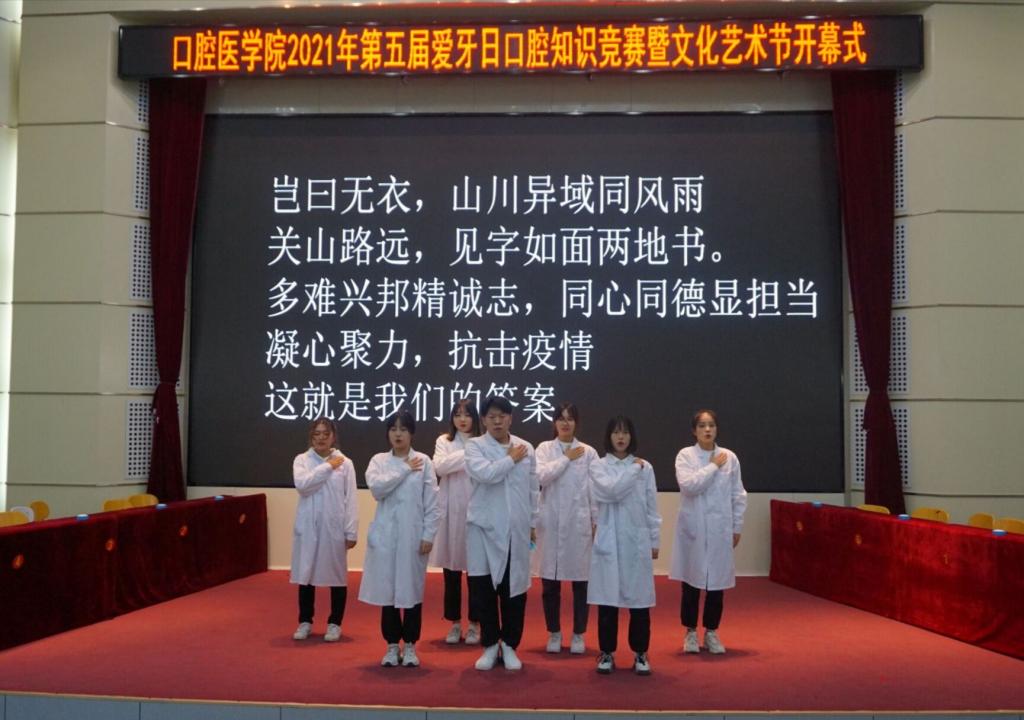 口腔健康,全身健康。为普及口腔医学知识,pg娱乐电子游戏官网入口于2021年10月25日晚在图书馆报告厅举办了“2021年第五届爱牙日口腔知识竞赛暨文化艺术节开幕式”。全体学生会成员和2021级学生参加了本次大赛,学院2020级辅导员王玉姣和2021级辅导员谭玥出席了本次活动。